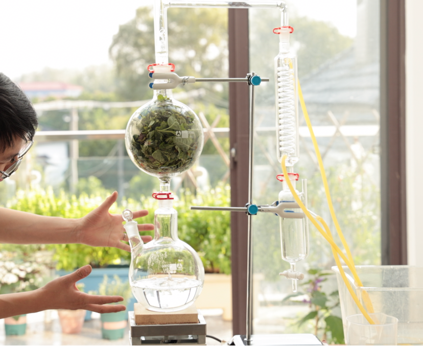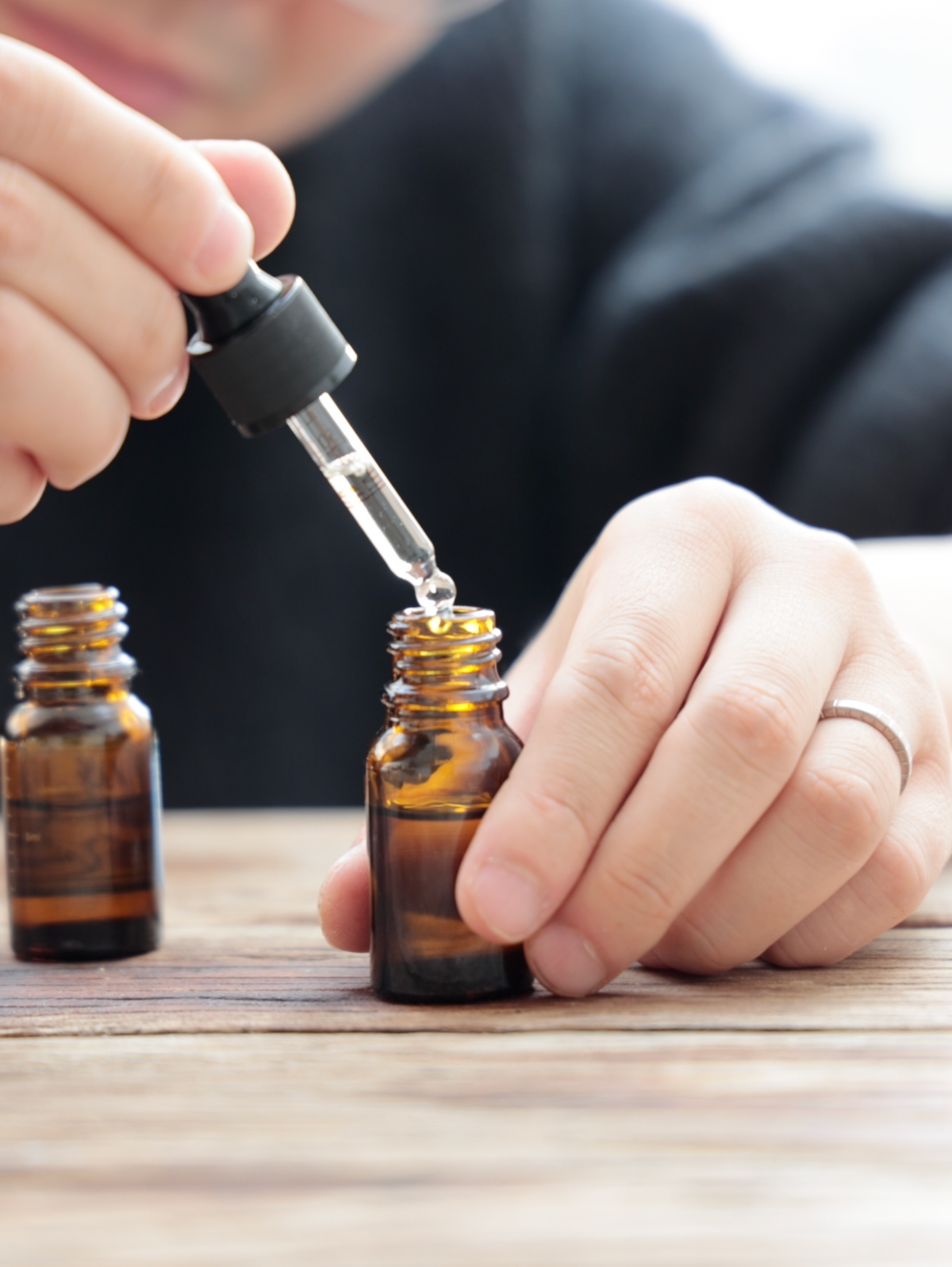 Different essential oils are blended by hand, tested slowly, and adjusted in small amounts.
