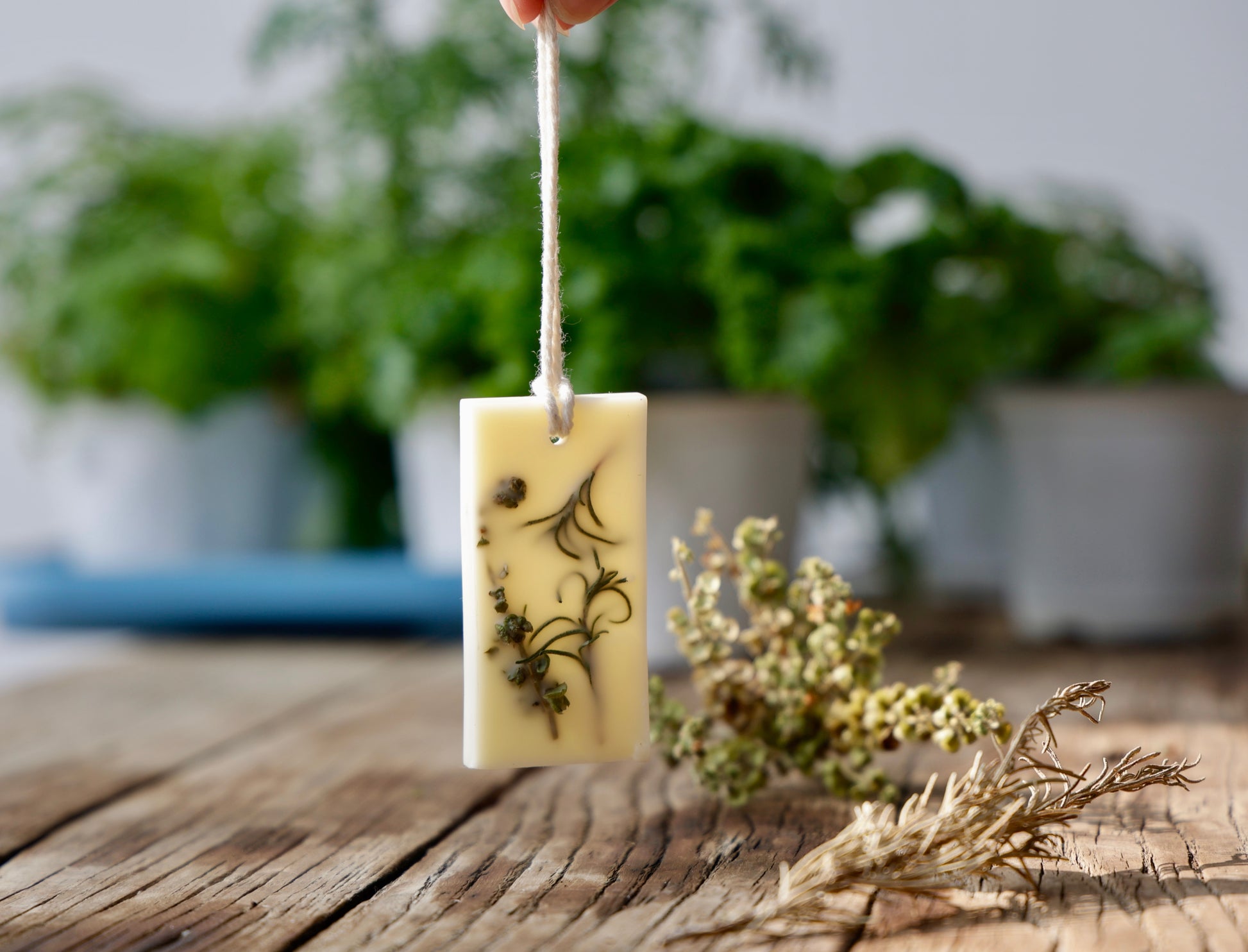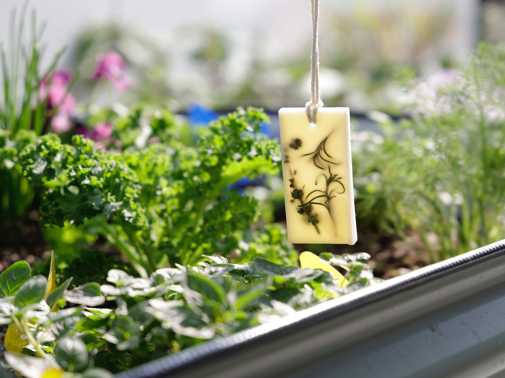 Decorated with herbs grown on my balcony — a small living memory preserved in wax.
